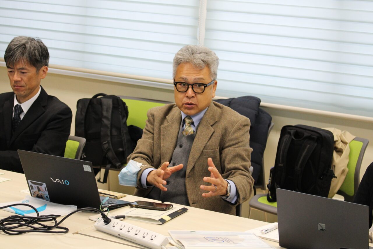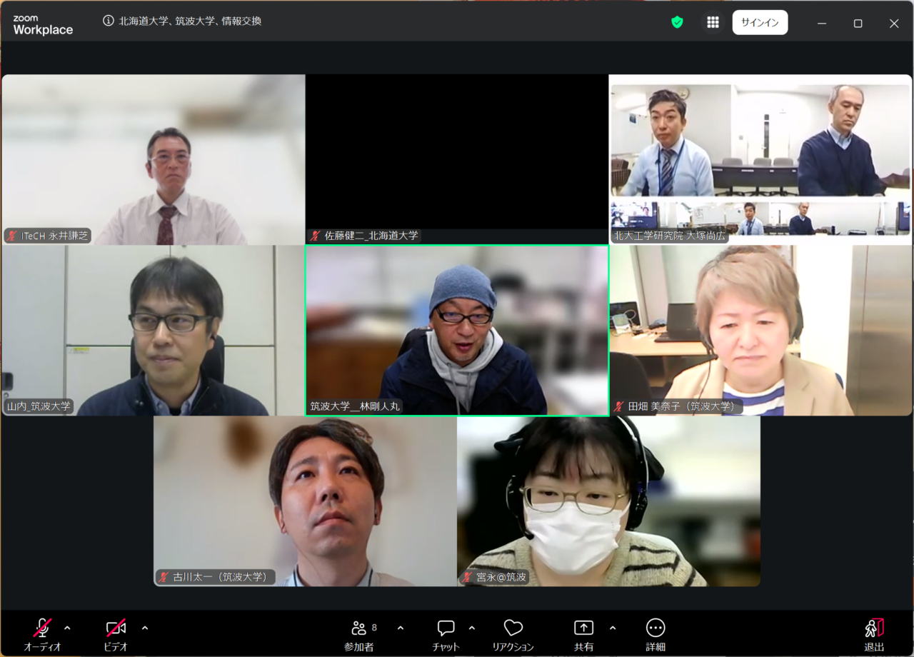 ニュース・イベント 2026年04月03日 ニュース 他機関との意見交換報告(令和8年3月) 年月日 機関名 内容 R8.3.2~3 京都大学 総合研究推進本部 組織運営、ほくだい技術者図鑑に関する意見交換 総合研究基盤研究センター見学 R8.3.26 筑波大学 総合技術室 組織運営、ほくだい技術者図鑑に関する意見交換 境 慎二朗 京都大学総合研究推進本部副本部長 筑波大学総合技術室との意見交換の様子